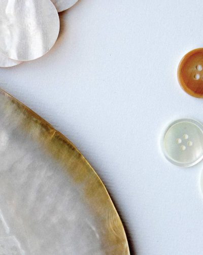 Chez Cotélac, parce que chaque détail compte, tous nos boutons sont confectionnés à partir de matières naturelles : la nacre, issue de l’élevage perlier, et le corozo, fruit du palmier à ivoire.